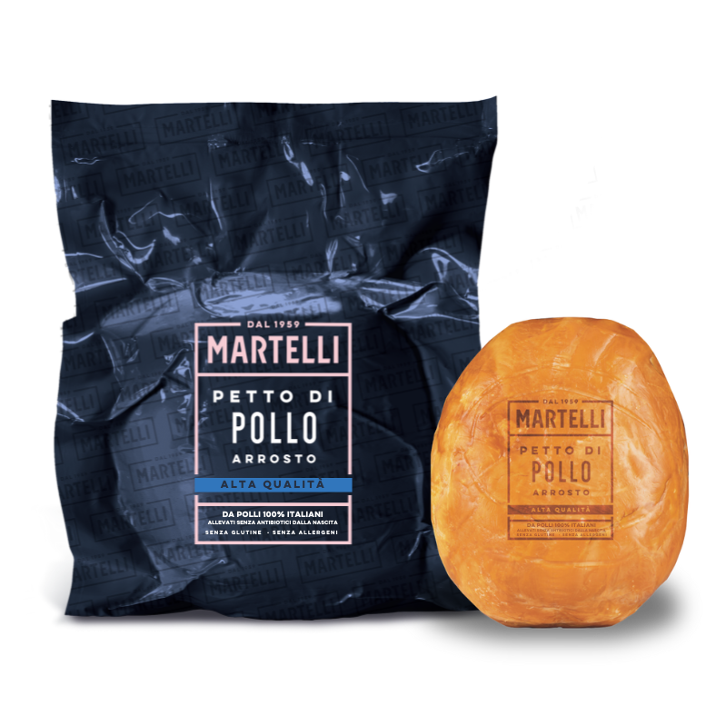 Made exclusively with whole Italian chicken breasts from chickens raised without antibiotics. After being steamed for a long time, the chicken breast is roasted to enhance its aroma and achieve its characteristic golden brown color.